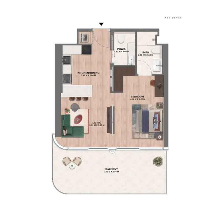 Suite area 875 sq. ft.